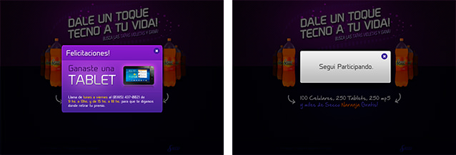 Una de las principales marcas de gaseosas del país confió en nosotros para crear un juego interactivo, en formato web, para entretener y premiar a sus consumidores durante la copa del mundo Brasil 2014. Los resultados fueron realmente positivos, por lo que continuamos creando nuevas soluciones y concursos para distintas promociones y campañas.